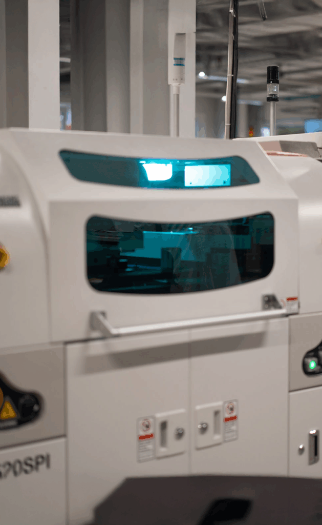 Im Gegensatz zu den THT-Elementen, werden bei SMT-Fertigungsverfahren sogenannte SMD-Elemente – also Surface-Mount-Devices oder oberflächenmontierte Bauelemente – mithilfe lötfähiger Anschlussflächen als Flachbaugruppe direkt auf die Leiterplatte gelötet. Die bei anderen Varianten übliche Durchkontaktierung von Drähten entfällt also. Durch unsere innovativen SMT-Verfahren können wir vollautomatisiert eine sehr dichte und beidseitige Bestückung der Leiterplatten ermöglichen, was den Platzbedarf deutlich verringert. Viele kleine Bauelemente auf einer reduzierten Fläche führen so zu deutlich kleineren und auch kostengünstigeren Produkten.